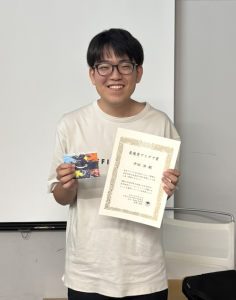 研究アイデア提案会 【Events】 2025年8月19日 研究室内で研究アイデア提案会を行いました。それぞれがオリジナルの研究アイデアを持ち寄った中、特に熱意あるプレゼンテーションを披露したM1の中田渉さんが投票により1位に選ばれました。おめでとうございます。